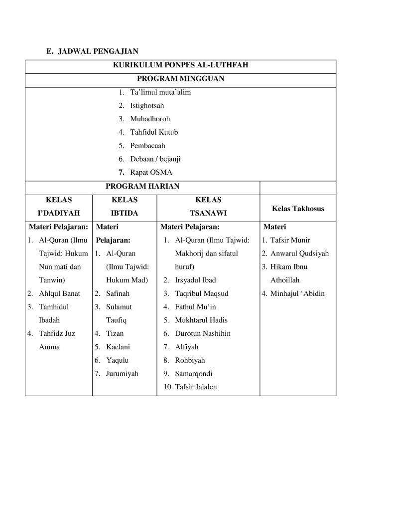 KURIKULUM PONDOK PESANTREN AL-LUTHFAH